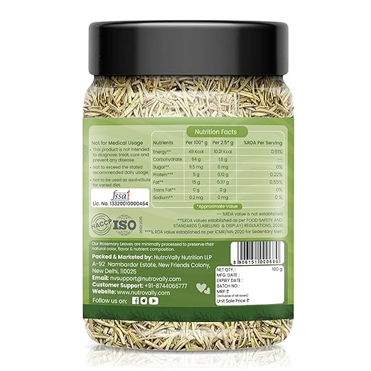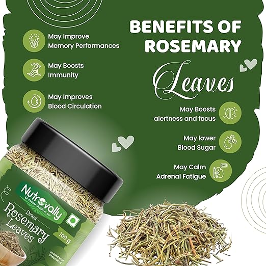 NutroVally 100g Dried Rosemary Leaves (Food Grade) | Essential for Hair Growth & Seasoning